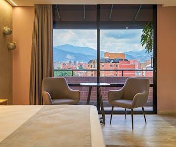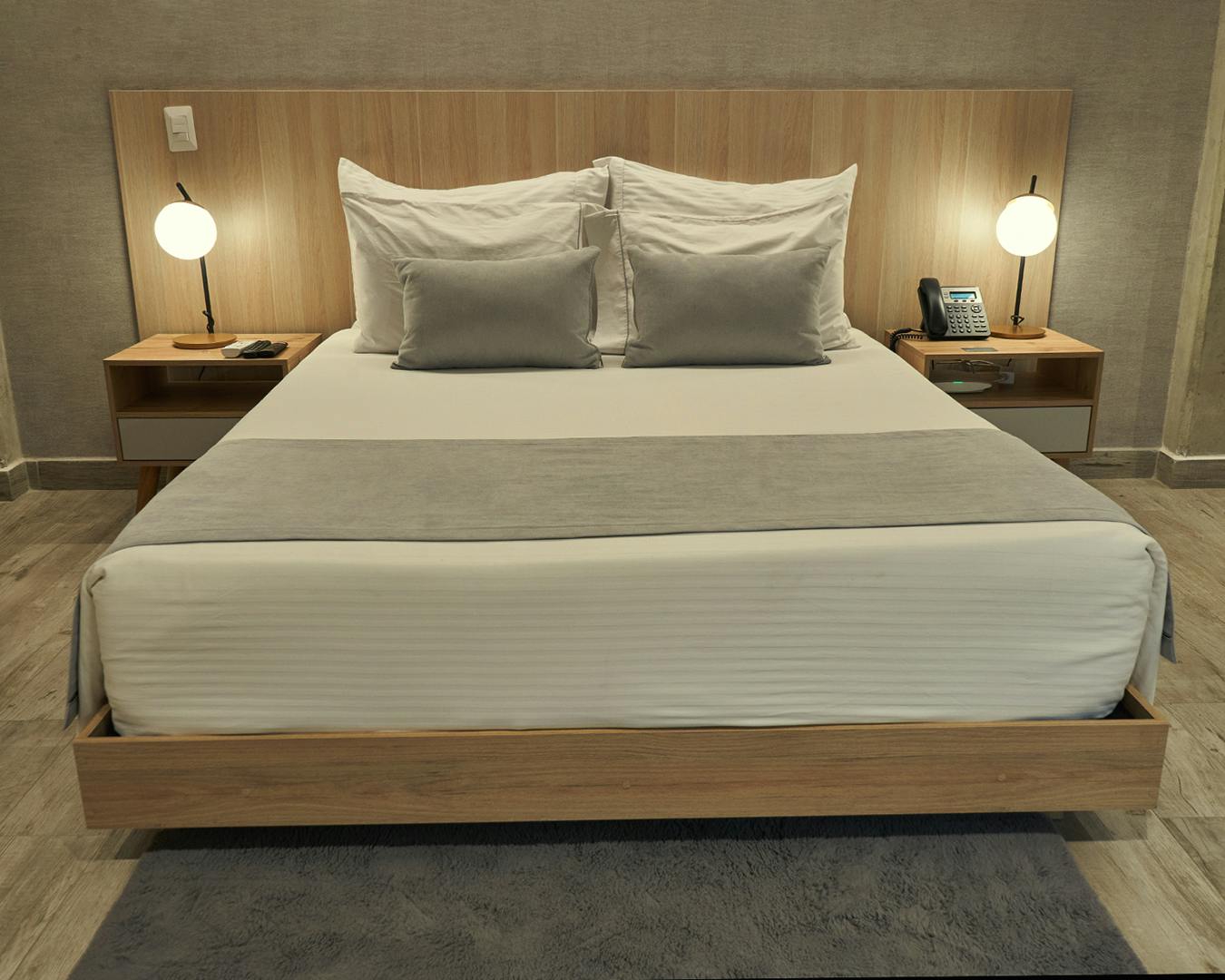 1 cama Queen, (1,60x1,90), baño con ducha, secador de cabello, Smart TV, teléfono, aire acondicionado, caja de seguridad, closet, minibar, y balcón.