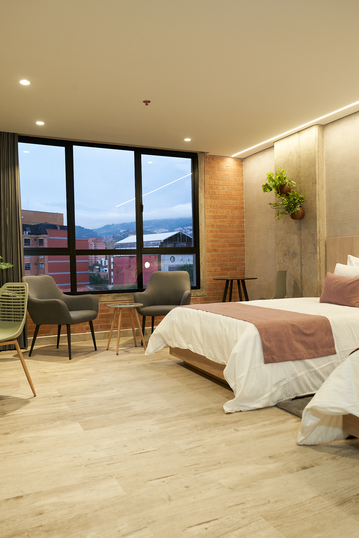 Dos camas dobles (1,40 x1,90), baño con ducha, secador de cabello, Smart TV, teléfono, aire acondicionado, ventana sellada, caja de seguridad, closet, escritorio, y minibar.